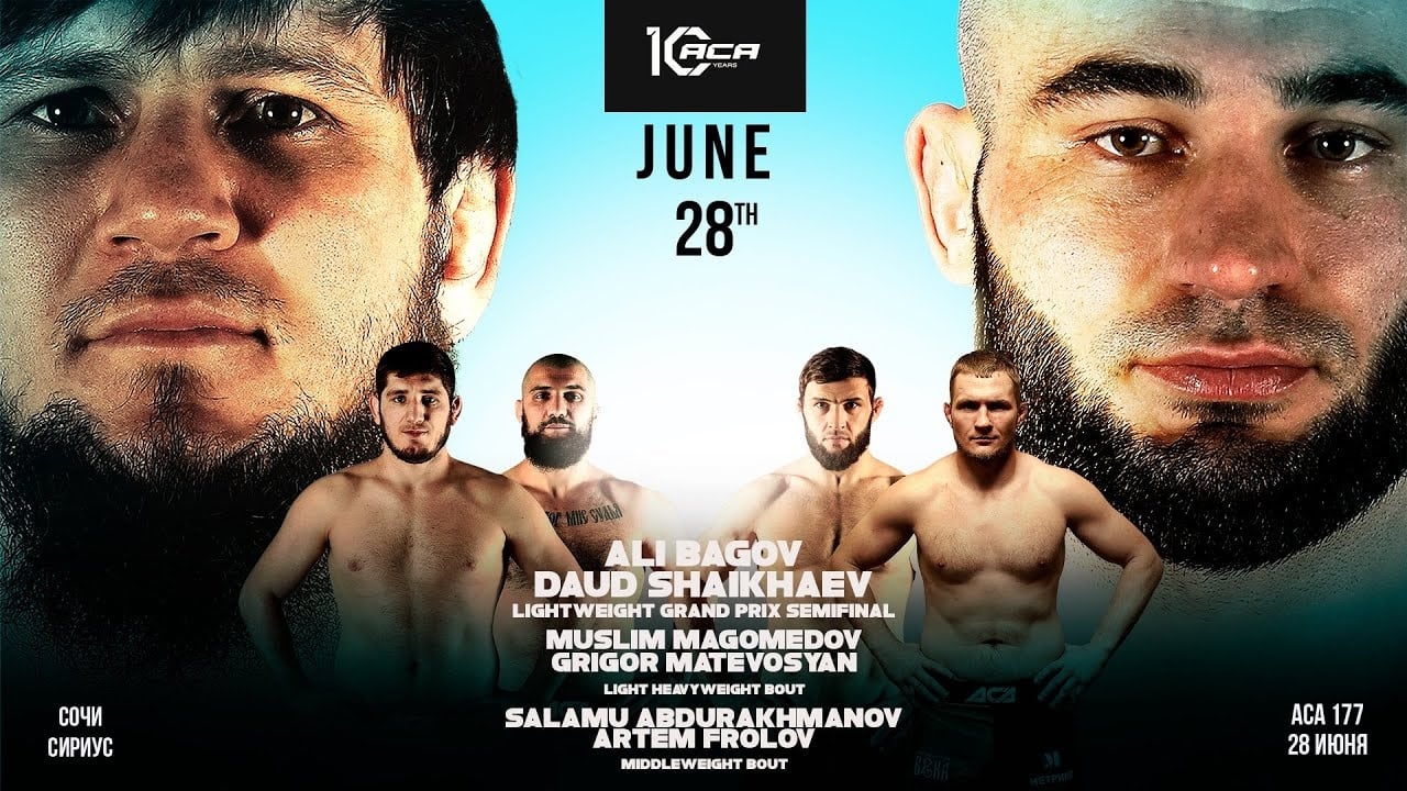 2024 / 0 hr 30 minACA 177: Bagov vs. Shaikhaev 2 was a mixed martial arts event that took place on Friday, June 28, 2024 the Bolshoy Ice Dome in Sochi, Krasnodar Krai, Russia.