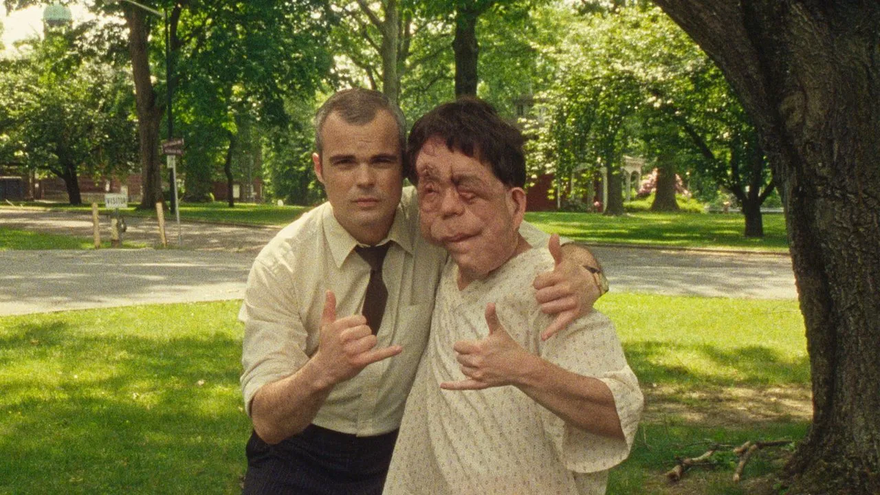 A beautiful actress struggles to connect with her disfigured co-star on the set of a European auteur's English-language debut.