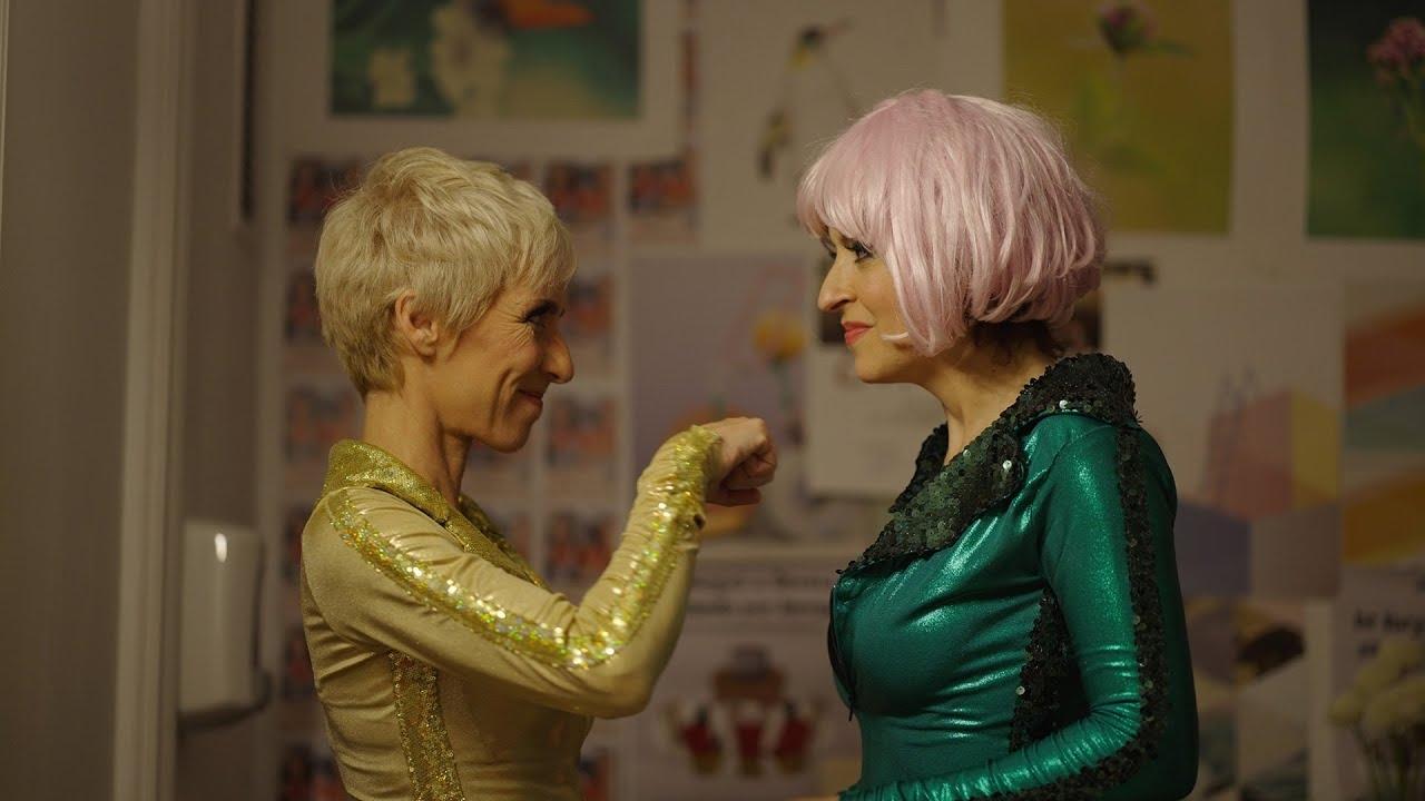 Two actresses, a dressing room, and some green slippers.