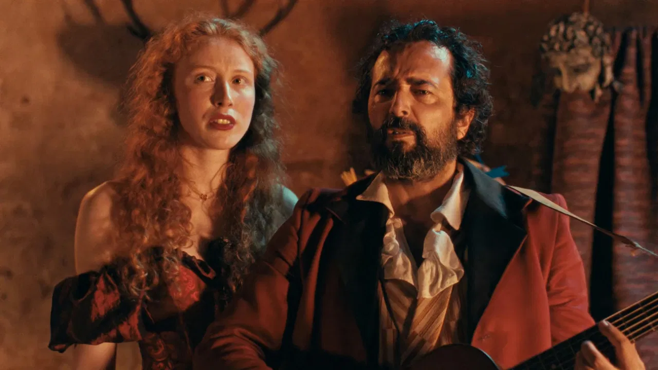 2026 / 2 hr 5 minIn a distant past, Léon and Elvira Berthelini, itinerant artists, make their living hopping from town to town. In Covarronca, harassed by the Police Commissioner, they are forced to spend the night out in the open. That’s when they meet Stubbs, a young Cambridge student, with whom they find shelter in the home of a painter at odds with his wife. In return for the hospitality, they remind their hosts that the love of art resolves the art of love. Meanwhile, an unusual curse sends them on absurd journeys into the 21st century, where the future of social security and of a rock band are at stake.