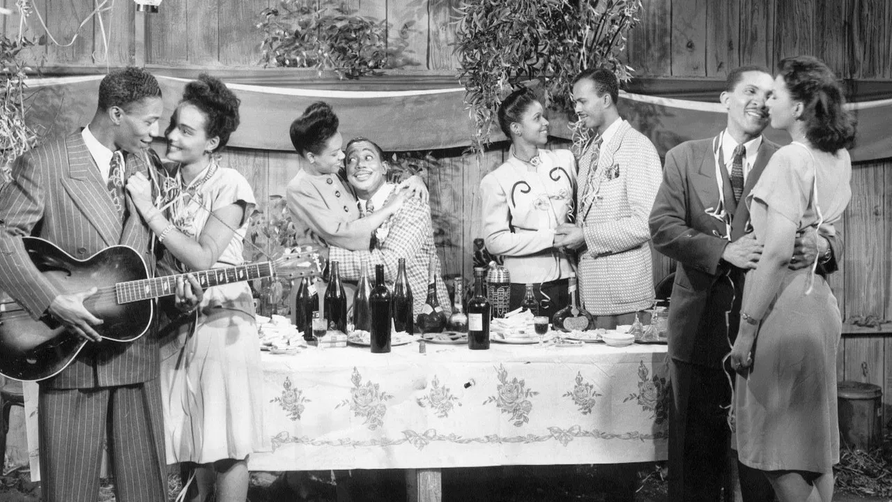 1947 / 1 hr 10 minTwo silky-smooth producers line up a potential backer (who'll put up half the cash) for a musical review. The catch is that they must find someone else to put up the other half. Enter cigar-smoking cross-dresser "Bumpsie" (Tim Moore), who poses as a wealthy society matron to fool the angel! Features vintage jam sessions with swing drummer Gene Krupa, Big Sid Catlett and his band, The Slam Stewart Trio and The International Jitterbugs.