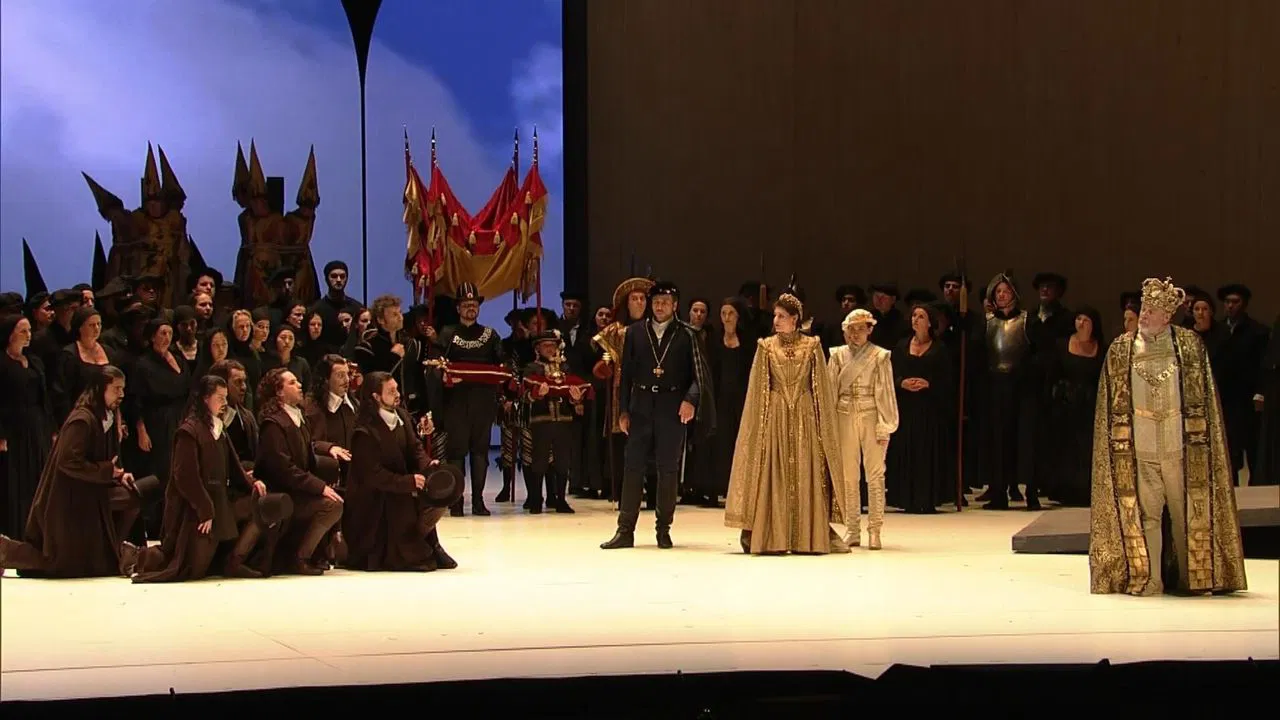 2013 / 4 hr 40 minVerdi wrote this five act opera with a French Libretto for the Paris opera. Premiere 1867. Then there are three versions of this opera, the French 1867 version, the revised Italian four Act Don Carlo 1884, plus the Modena version 1886. This version is the 1884 version with Act One reinstated, as well as the original beginning of Act 2. To complicate matters the French opera was simply translated into Italian, and then the changes were made. There is an even newer edition completed in 1980 by Ricordi, and others floating around as well.