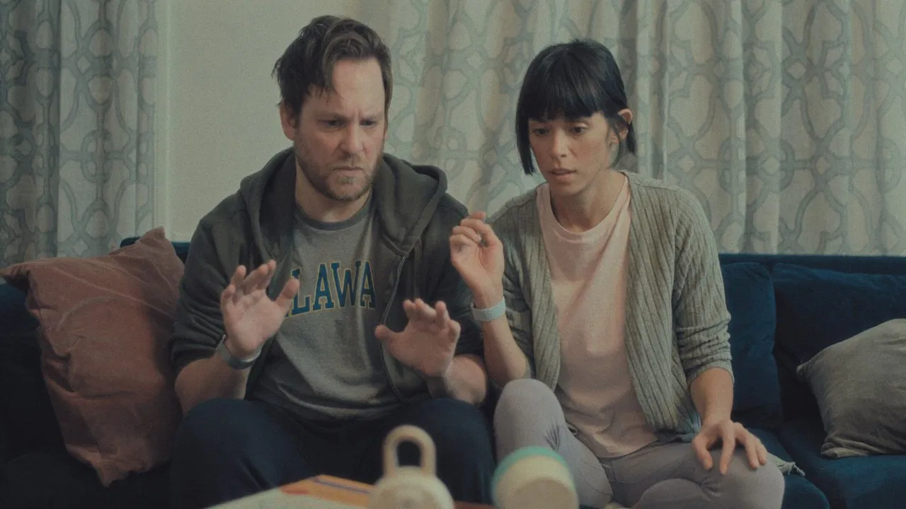 Caitlin and Kevin are vexed by their child and their parents through their baby monitor as they try to teach their infant daughter to soothe herself.