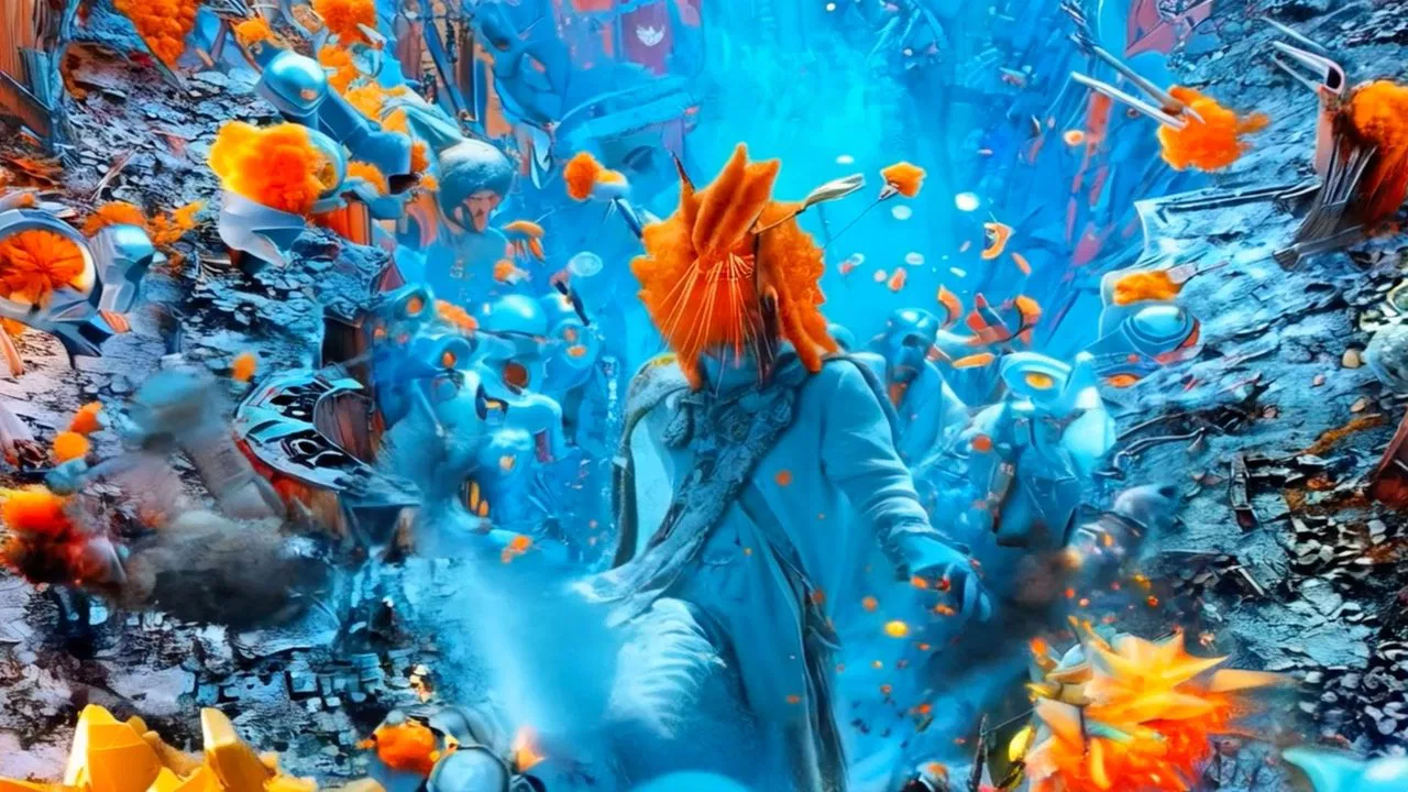 The Hypergaussian War is an AI-generated feature film in which forgotten video game avatars from past eras rise to fight an endless, algorithmic war. Obsolete 8-bit warriors, polygonal relics, and motion-captured ghosts clash across surreal landscapes that merge the logic of digital combat with the haunting depth of 16th-century Flemish painting. Each battle unfolds within hybrid architectures—half cathedral, half code—where pixels and brushstrokes coexist in luminous chaos. The film charts the evolution of game aesthetics, from pixelated minimalism to photorealistic excess, transforming visual history into a battlefield of memory and computation. Both elegy and spectacle, The Hypergaussian War reflects on obsolescence, artificial intelligence, and the endless recursion of images seeking meaning in their own destruction.