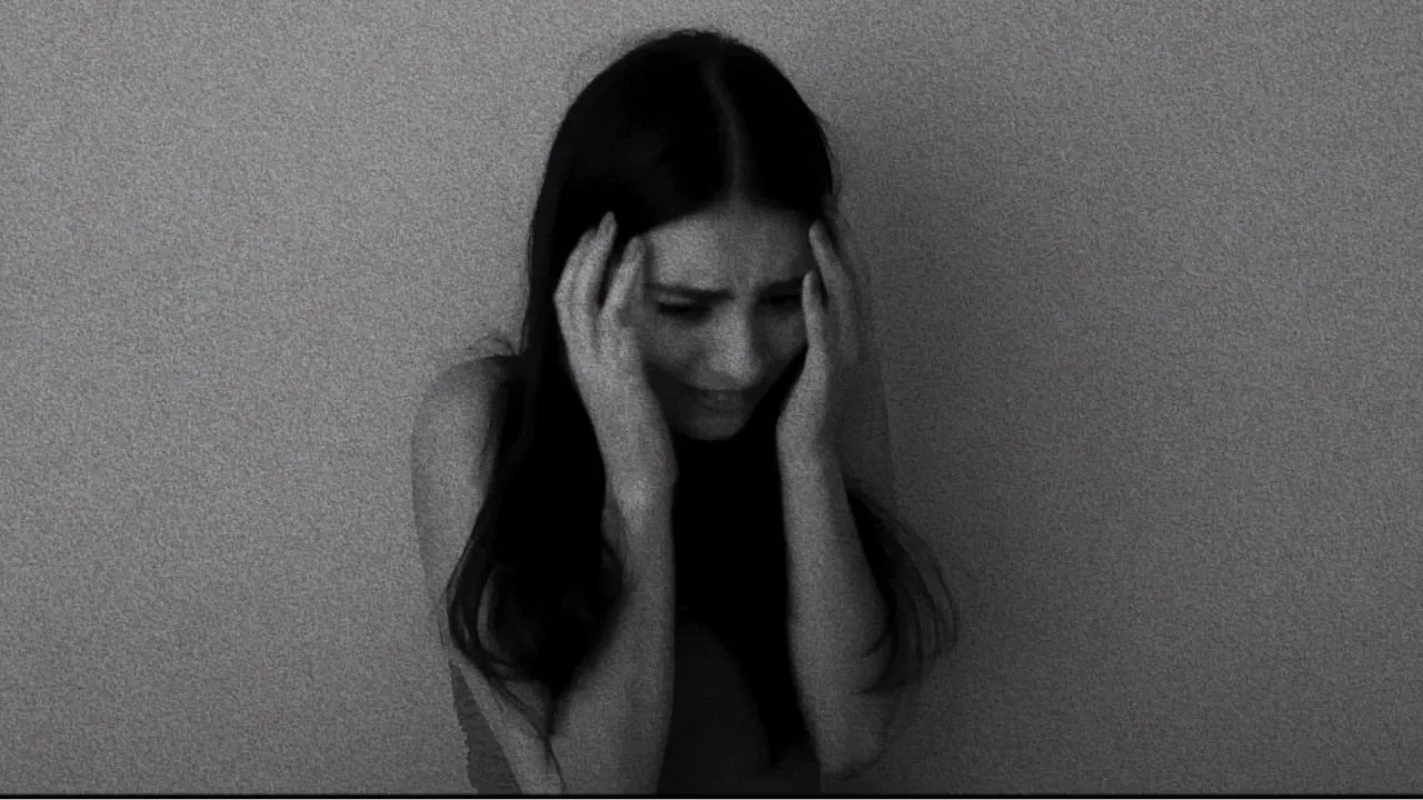 A young woman experiences the different manifestations of a sudden panic attack.