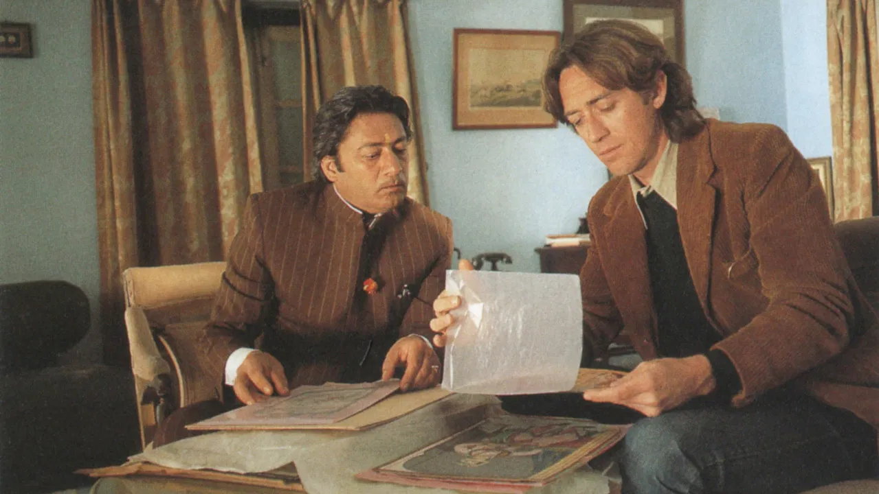 This lighthearted romp through Royal India presents a world of Maharajas, palaces, imperiled art objects, and the foreign collectors who will stop at nothing to possess them. Peggy Ashcroft and Larry Pine star as two rapacious art collectors who come to the decaying Art Deco palace of a young Maharaja (Victor Banerjee) to examine a legendary collection of Indian miniature paintings. While vying with each other to get the pictures away from the royal couple—nicknamed Georgie and Bonnie as children by their Scottish governess—they must also divine the true motives of the Indian curator of the collection (Saeed Jaffrey), who, in league with the Maharaja’s beautiful sister (Aparna Sen), may be working against them. Amidst the backdrop of lavish tourist entertainments, Christmas parties, fireworks, and even an English ghost, a desperate game of palace intrigue will determine the ultimate resting place of the priceless paintings.