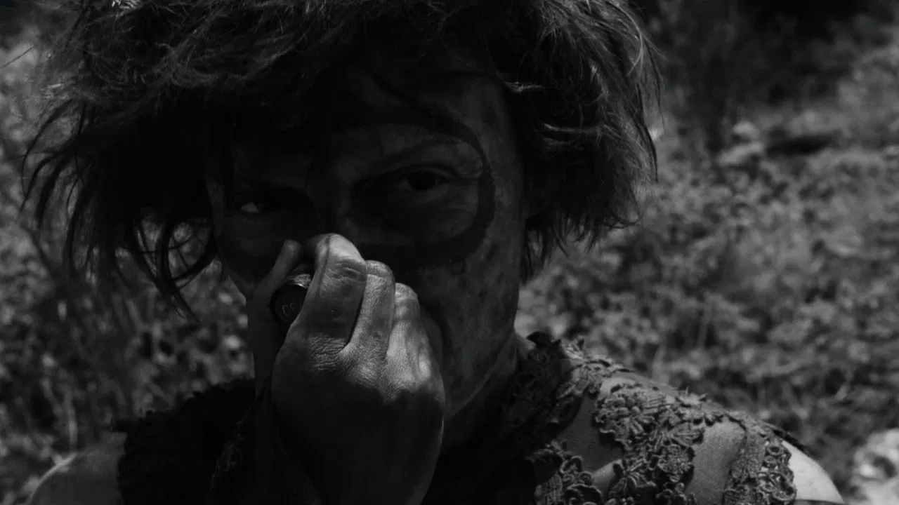 A woman is forced to sit under a hanged rotting corpse in the middle of a burnt forest, until the authorities decide that she has been punished enough.