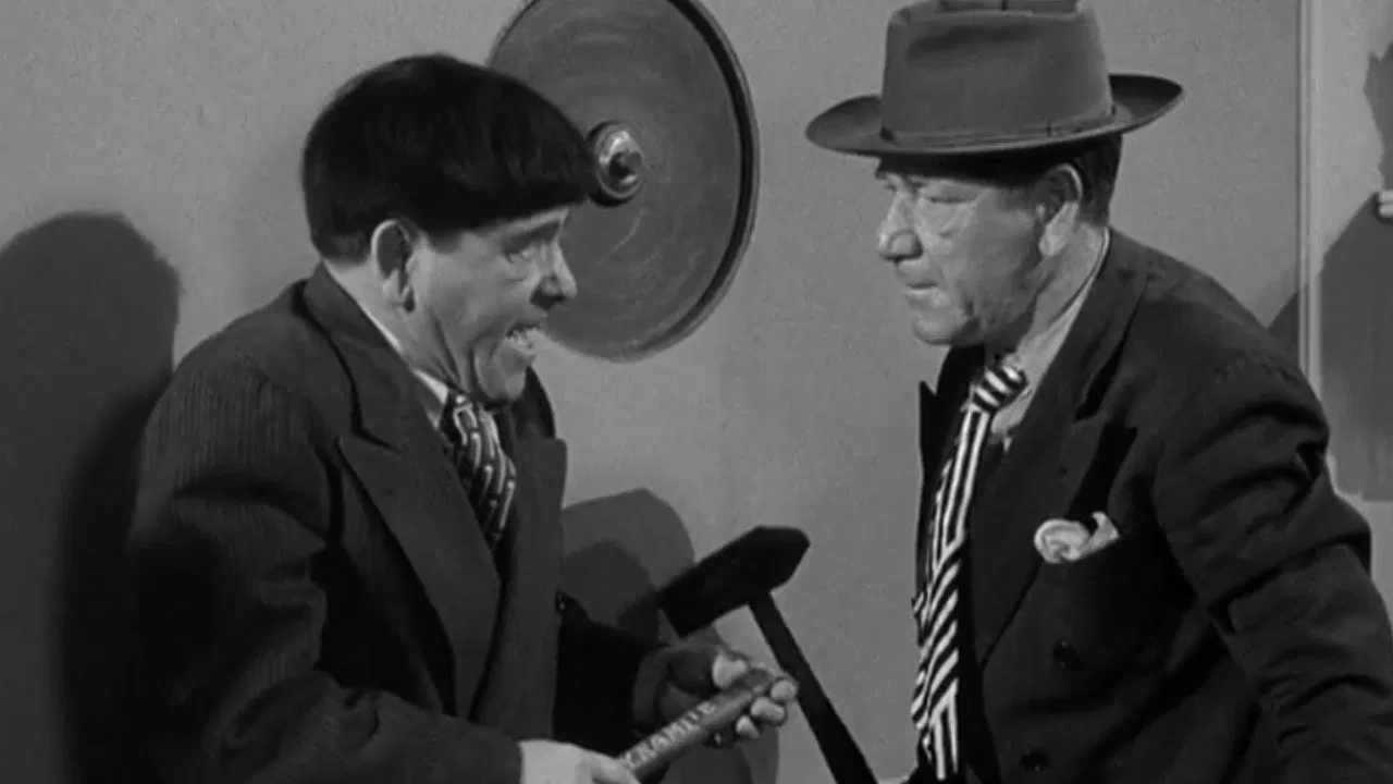 The stooges do a good turn and help a stranger open a safe in what they think is the man's house. Actually the man is a crook and the boys were unwitting accomplices to a robbery. Once they realize what's happened, the stooges go after the bad guy and who's left on the train to Los Vegas. The boys trap the villain and recover the booty.