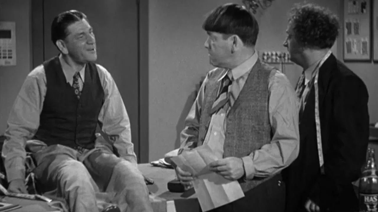 1953 / 0 hr 17 minThe stooges run a tailor shop and need money to pay their creditors. A bank robber leaves his coat in the shop with a combination to a safe. When the crook comes back to retrieve the coat, the stooges capture him and get his bankroll.