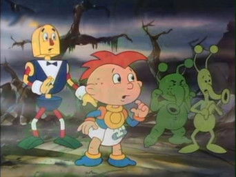 1988 / TV-GA diaper-wearing toddler with a mohawk named Maxwell "Fantastic Max" Young has adventures in outer space with two of his toys: FX, a pull string alien doll from a planet called Twinkle-Twinkle, and A.B. Sitter, a C-3PO-like android made of blocks.