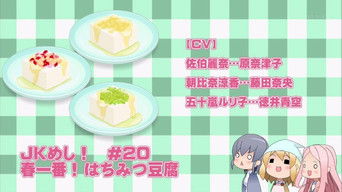 2015Three high school girls have mastered the art of cooking simple, B-class dishes called JK meshi. The three girls — Reina, Ryouka, and Ruriko — are all classmates in their second year of high school. They often get distracted when studying for tests, and when they do, they cook JK meshi.