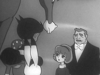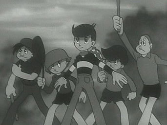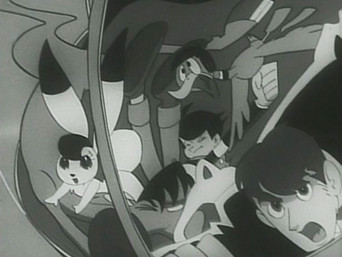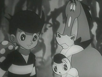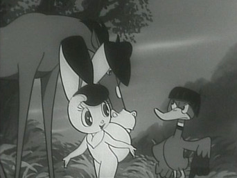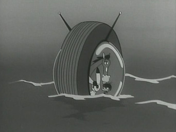 1965The Galactic Federation is concerned about the number of wars on the Planet Earth. It sends three agents to determine if the planet is a potential threat to the universe, and whether it should be destroyed. The instrument of destruction is a device resembling a large black ball with two antennae that is variously called an anti-proton bomb, a solar bomb, and a neutron bomb. The agents (Captain Bokko, Nokko, and Pukko) are originally humanoid in appearance, but upon arrival on Earth they take on the appearances of a rabbit (Bokko), a horse (Nokko), and a duck (Pukko) that they had captured as examples of Earth life forms. While on Earth they travel in a tire-shaped vehicle capable of enormous speeds called the Big Wheel, which can travel on both land and water (and, with modifications, through the air)