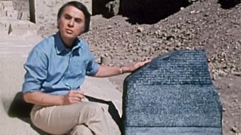 At the beginning of this cosmic journey across space and time, Dr. Carl Sagan takes us to the edge of the universe aboard a spaceship of the imagination. Through beautiful special effects, we witness quasars, exploding galaxies, star clusters, supernovas and pulsars. Returning to our solar system, we enter a re-creation of the Alexandrian Library, the seat of learning on Earth 2,000 years ago.