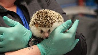 Dr. T has her hands full with a prickly hedgehog in need of a tiny tooth extraction.