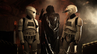Two troopers try to mask a malfunctioning forcefield from their captive.